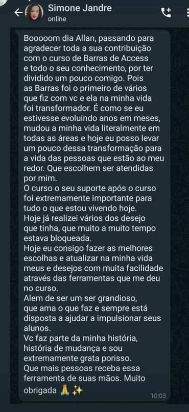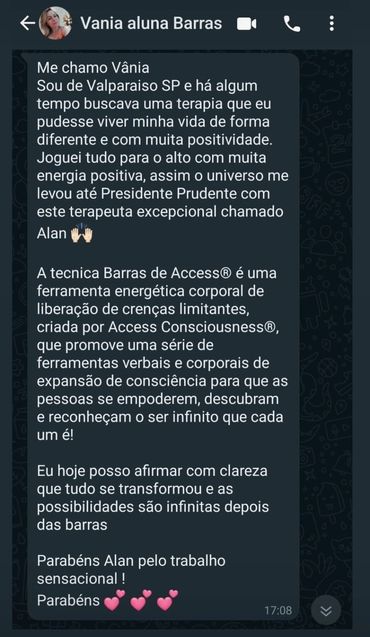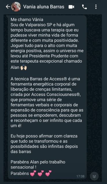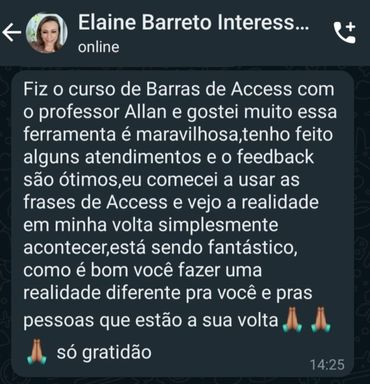 A Hipnoterapeuta Rose Gomes descreve sua experiência da classe de Barras de Access com o facilitador Allan Fervença